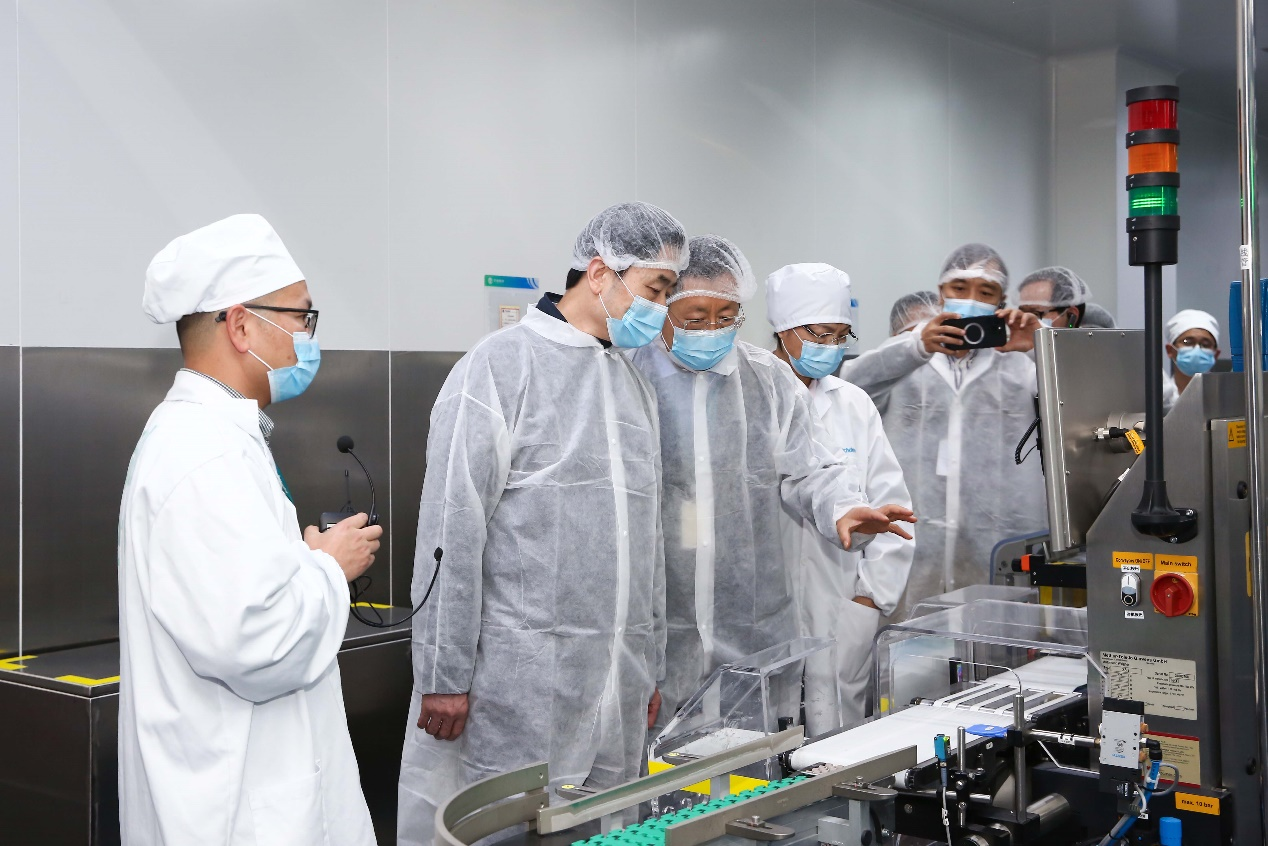▲甘霖书记实地参观海普瑞依诺肝素钠制剂车间,听取董事长李锂介绍生产工艺与质量体系